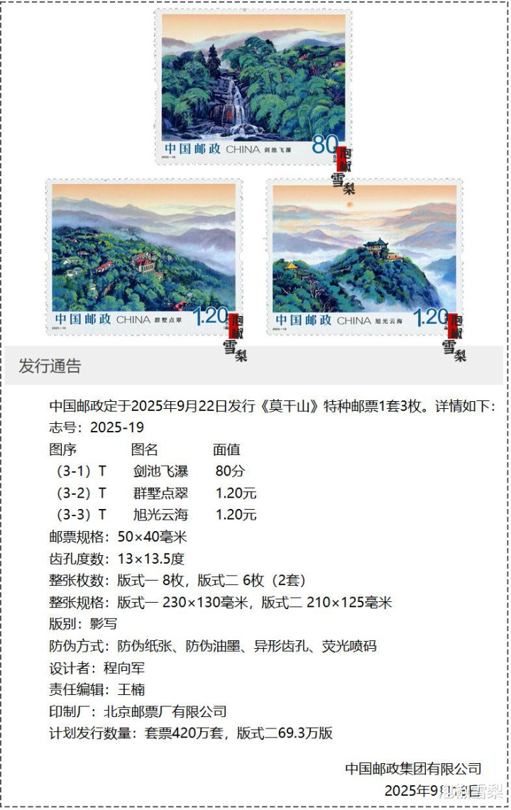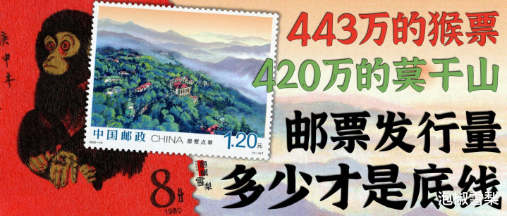 邮票领域标志性的1980年猴票发行量为443万多枚,2025年9月22日发行的《莫干山》计划发行量则降低到了420万,如果不加版式二中的邮票,那么这套邮票比猴票还要少13万套。